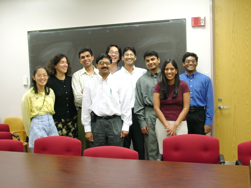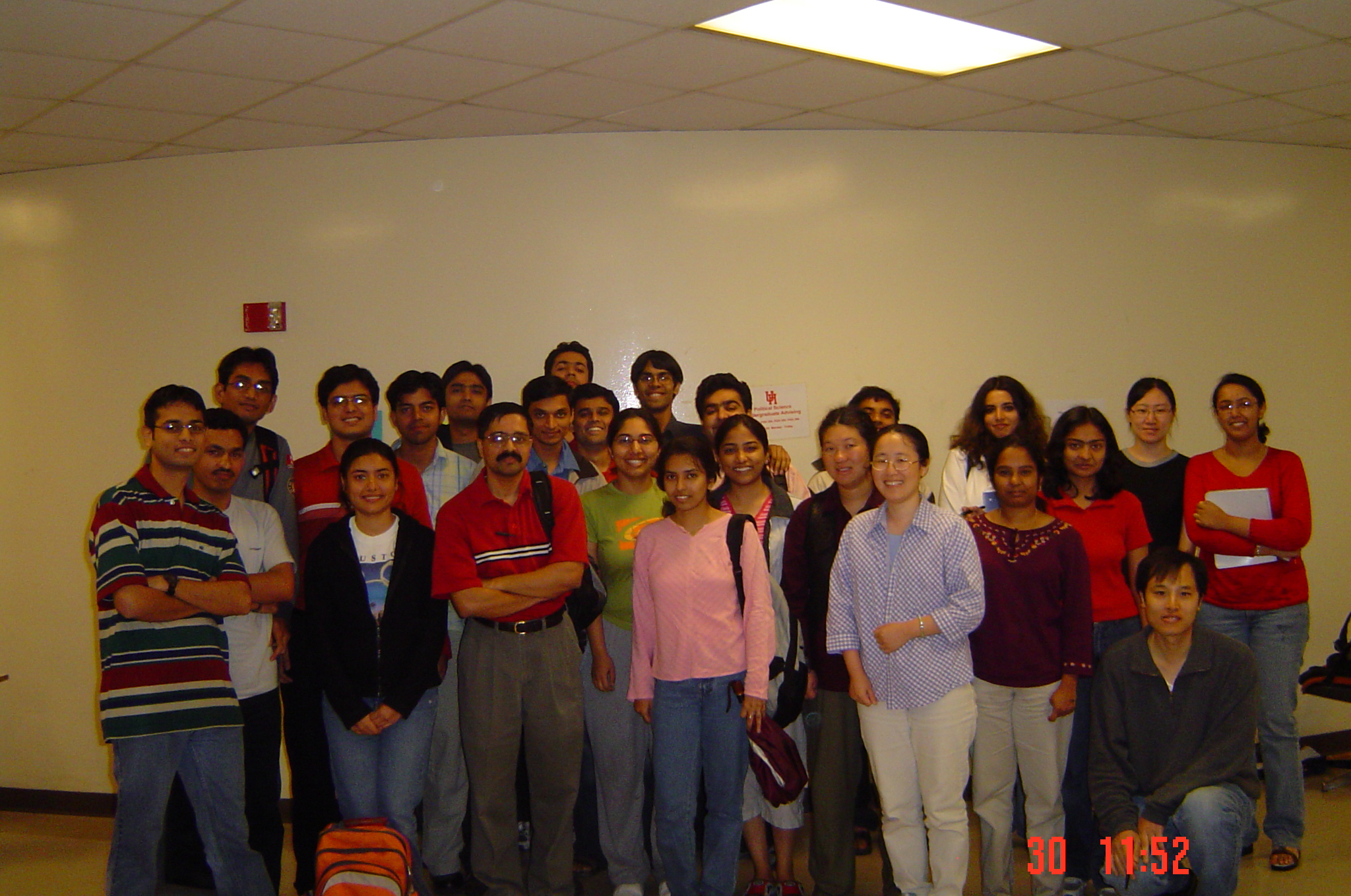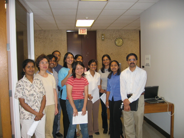 Groups of COSC 6318 attendees who gathered around after a review May 2004