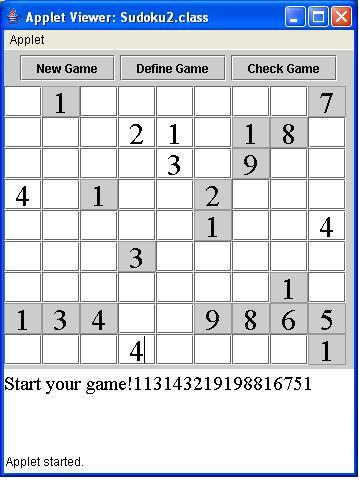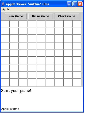 [1] Description: You are implementing a simplified Sudoku game as an Applet. The following screen shot described the minimum GUI components. It is intended as a suggestion. You are free to design your GUI.