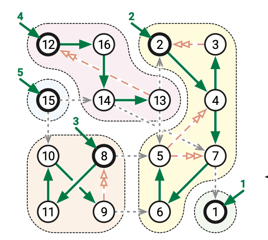 Hint: checkout the algorithm in figure 6.16 in the textbook, and the example execution in figure 6.17